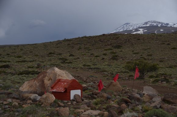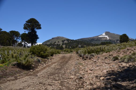Nach der Passquerung gönnen wir uns eine Etappe im flacheren Terrain mit Sicht auf den Copahue, einen Vulkan von 3.000m Höhe und somit weithin sichtbar (41km, 300m).