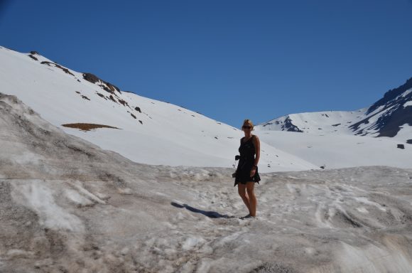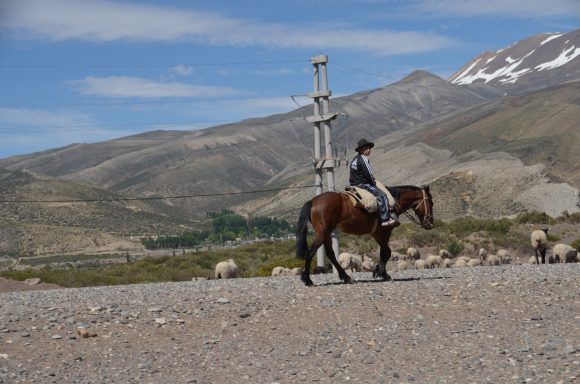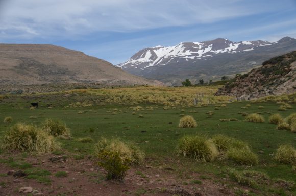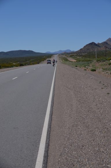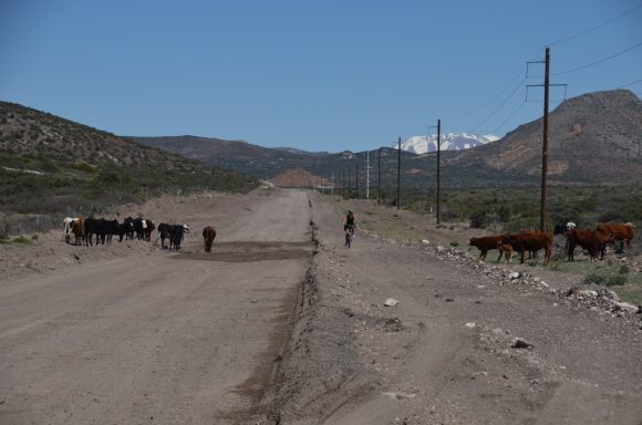 An die Kletterei mit dem Rad nunmehr gewöhnt, geht es nun von Chile nach Argentinien bis nach Villa Petunija (55km, 1.065m), einem kleinen touristisch geprägten Ort in den argentinischen Anden. Der Grenzübergang dauert sehr lange und wird akribisch durchgeführt: auch die Rahmennummern der Räder werden protokolliert. Villa Petunija liegt in 1.200m Meereshöhe und entsprechend anstrengend ist die Fahrt. Wir sehen jede Menge Nutztiere, die frei in der Landschaft leben, keine Zäune. Die Gegend ist menschenleer.