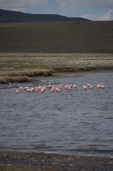 Anschließend steht wieder eine Etappe zum Domuxo auf dem Programm (25km, 800m). Gestartet sind wir an einem See mit Schwarzhalsschwänen und Flamingos. Da massive Regenwolken am Himmel zu beobachten waren, ging es in einer rasanten Fahrt durch die Steppe, die nur von Schafen und Pferden geprägt ist.