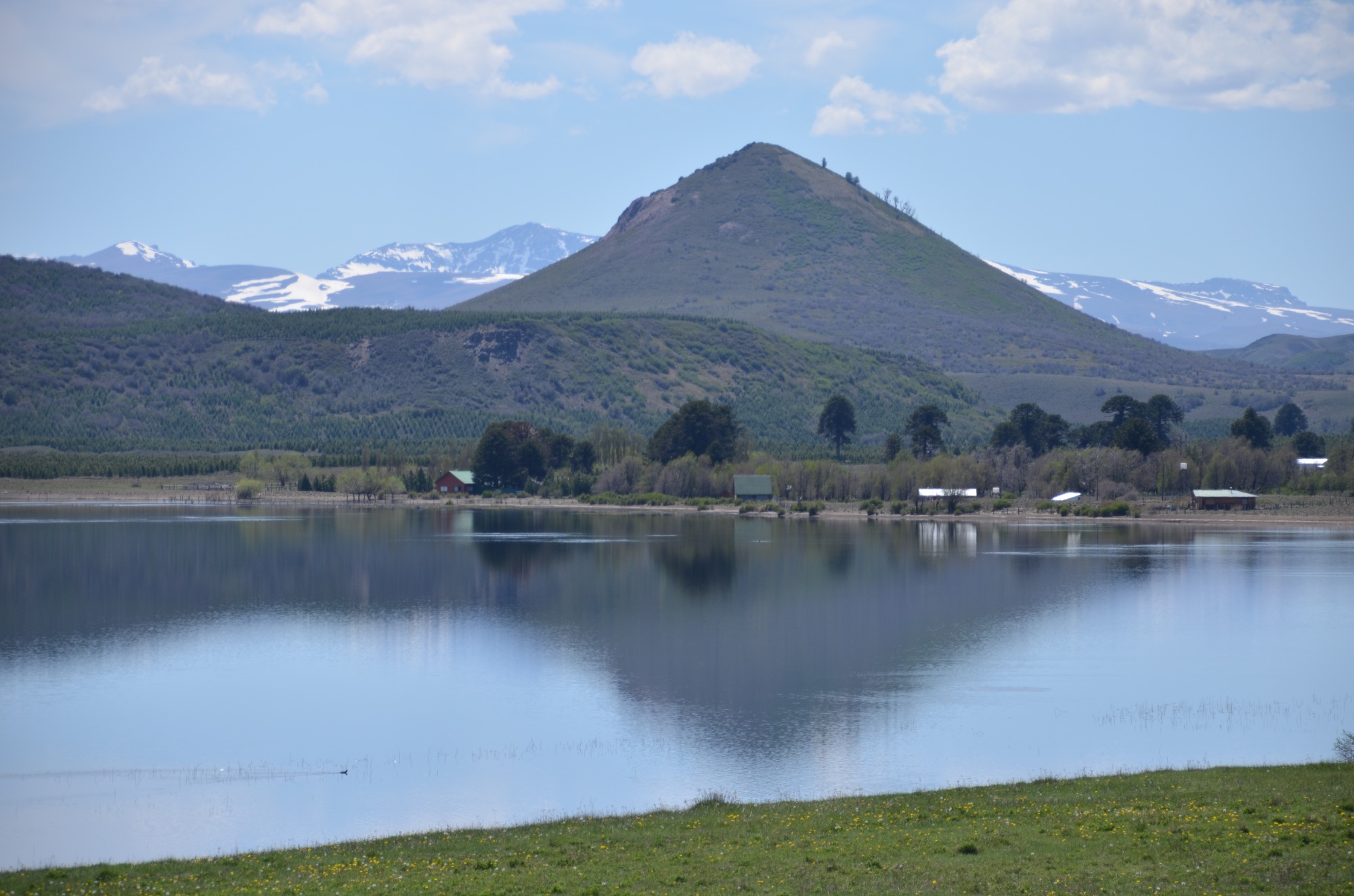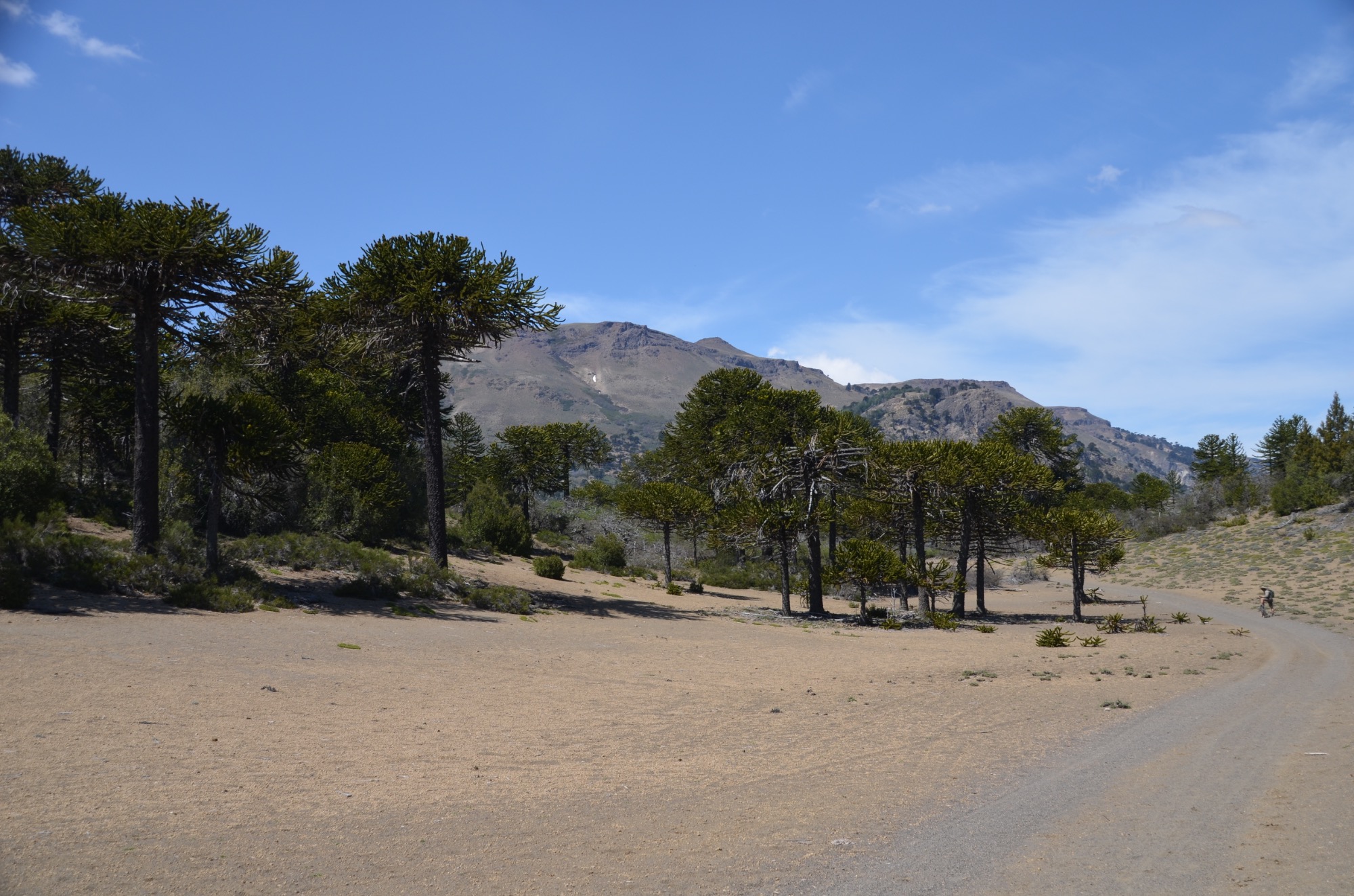 Nach der Passquerung gönnen wir uns eine Etappe im flacheren Terrain mit Sicht auf den Copahue, einen Vulkan von 3.000m Höhe und somit weithin sichtbar (41km, 300m).
