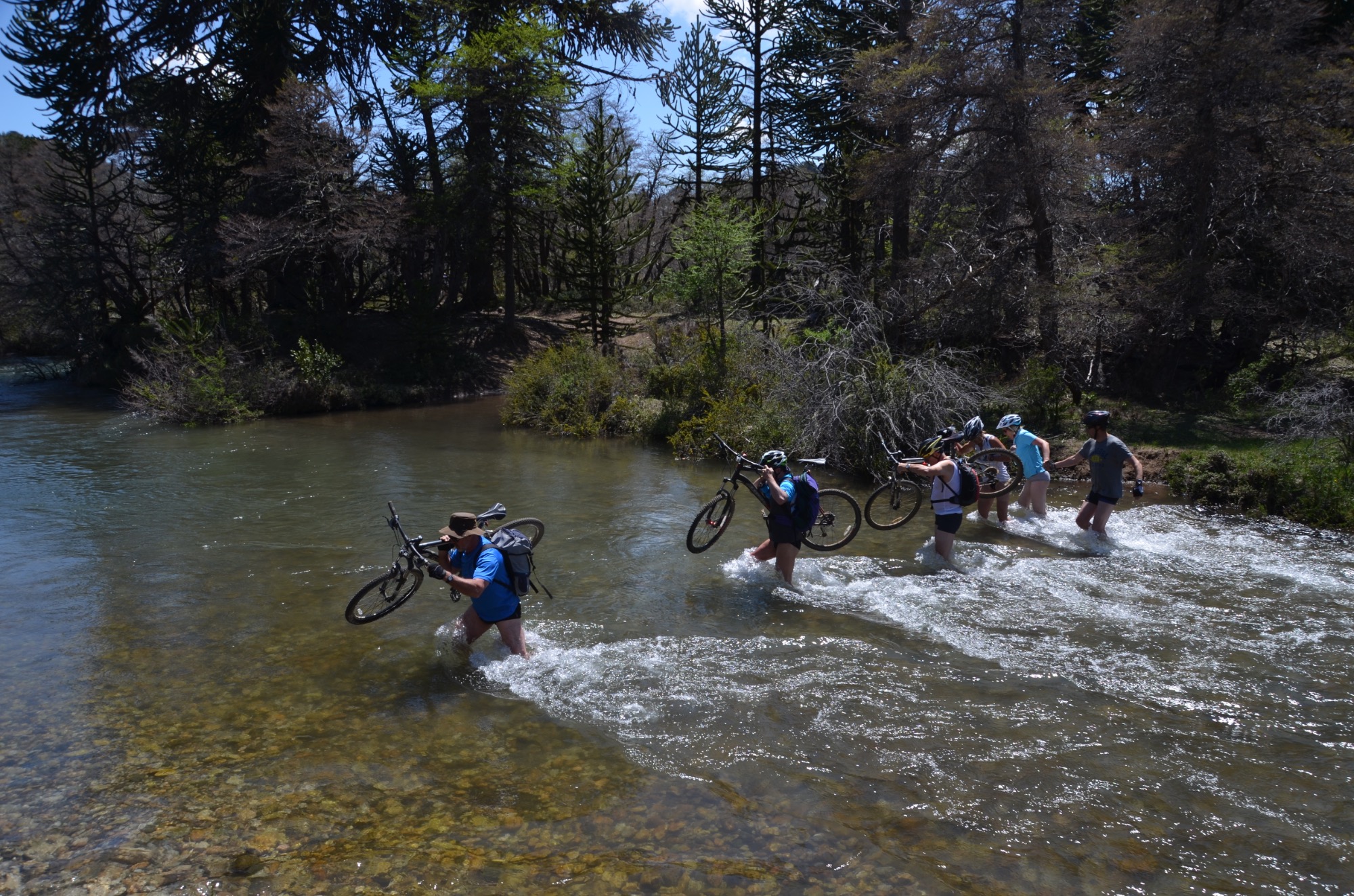 Weiter geht es in der näheren Umgebung und so erreichen wir den Moquehuesee (35km, 900m). Das Ziel erreichten wir nach einer Flussquerung im hüfttiefen und eiskalten Wasser.
