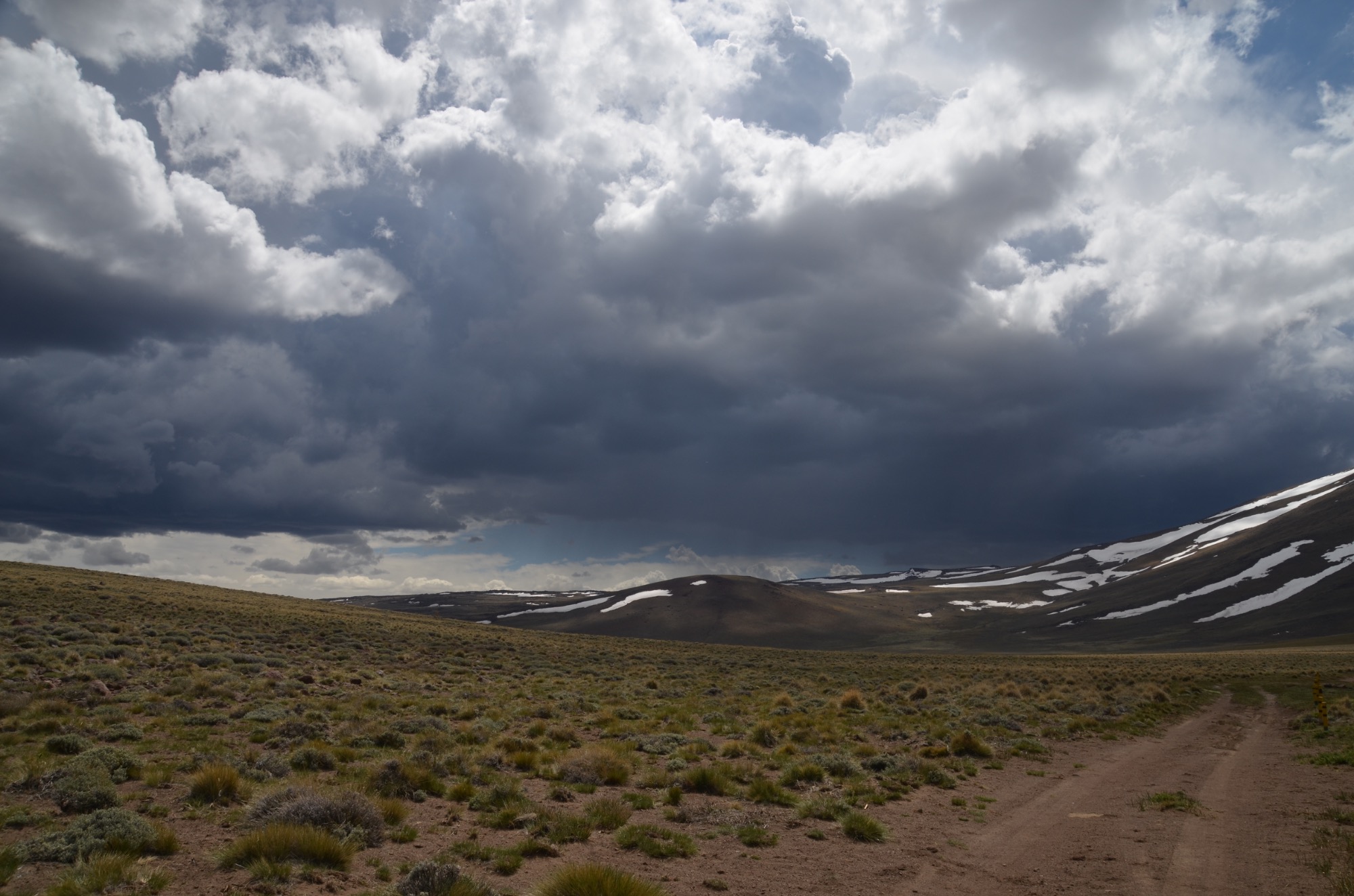 Anschließend steht wieder eine Etappe zum Domuxo auf dem Programm (25km, 800m). Gestartet sind wir an einem See mit Schwarzhalsschwänen und Flamingos. Da massive Regenwolken am Himmel zu beobachten waren, ging es in einer rasanten Fahrt durch die Steppe, die nur von Schafen und Pferden geprägt ist.