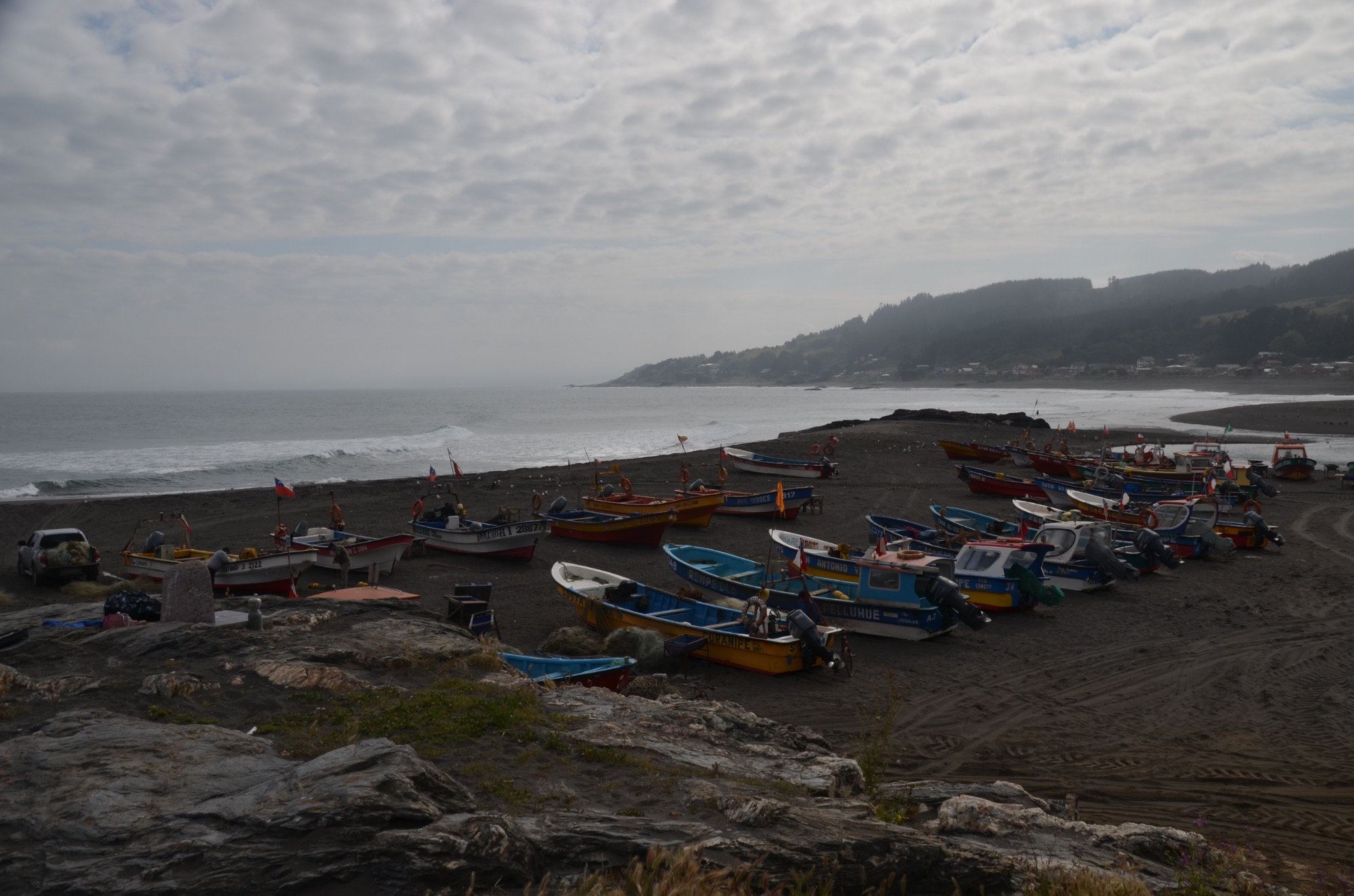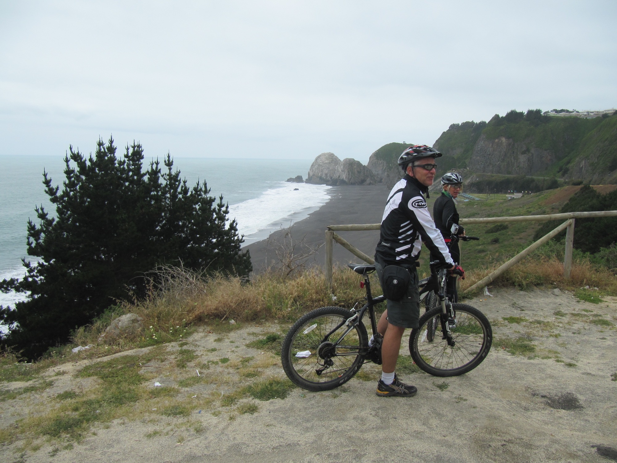 Die erste Etappe, ein Kennenlernen der Räder (MTB) und des Klimas, führt uns bei starkem Gegenwind vonConstitucien nach Pellutine (37km, 300 Höhenmeter). Hier kann man die Landschaft am Pazifik wunderbar genießen, wenn nicht der kalte Gegenwind wäre.