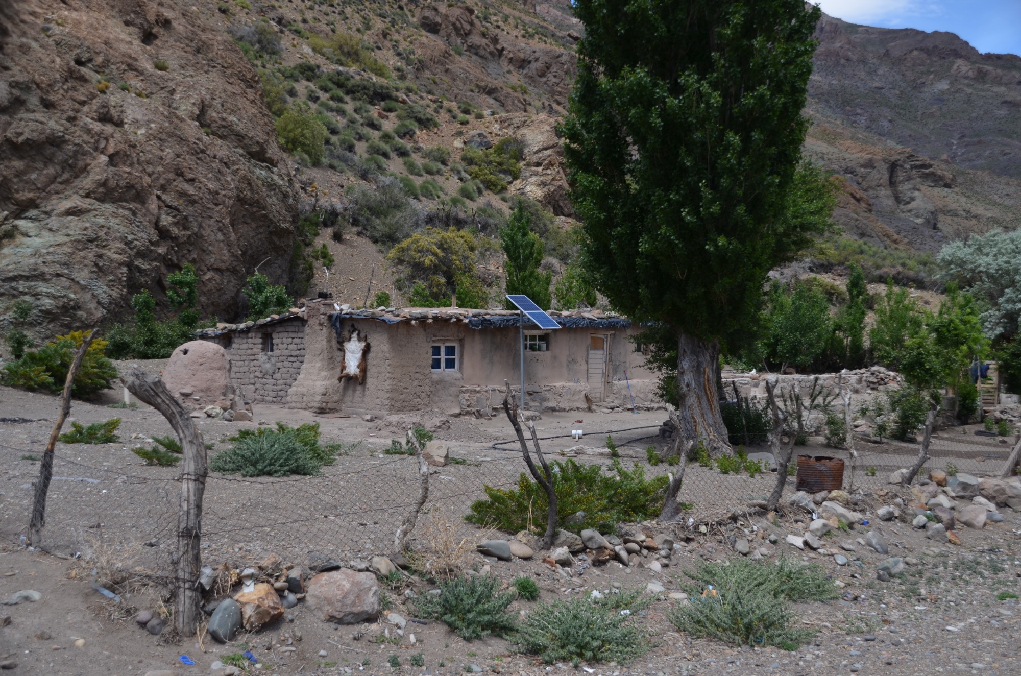 An die Kletterei mit dem Rad nunmehr gewöhnt, geht es nun von Chile nach Argentinien bis nach Villa Petunija (55km, 1.065m), einem kleinen touristisch geprägten Ort in den argentinischen Anden. Der Grenzübergang dauert sehr lange und wird akribisch durchgeführt: auch die Rahmennummern der Räder werden protokolliert. Villa Petunija liegt in 1.200m Meereshöhe und entsprechend anstrengend ist die Fahrt. Wir sehen jede Menge Nutztiere, die frei in der Landschaft leben, keine Zäune. Die Gegend ist menschenleer.