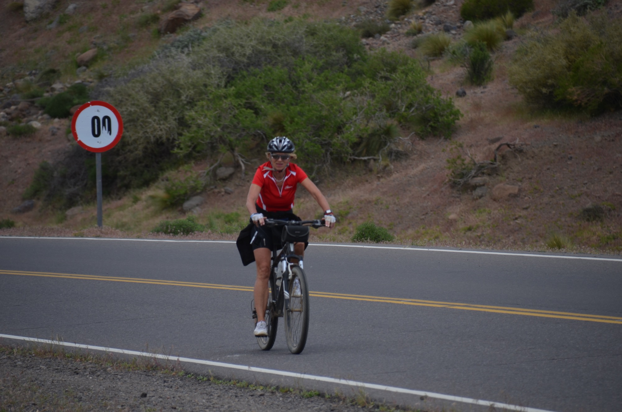 Zum Abschluss geht es nach Talca, einer größeren Stadt in Chile (33km, 1.340m). Die Etappe fand in 2.200m Meereshöhe statt und die letzte Abfahrt wurde noch einmel genossen: Mit MTB kann man 59,4km/h fahren (...). In Talca endet die Radtour durch einen Teil von Patagonien.