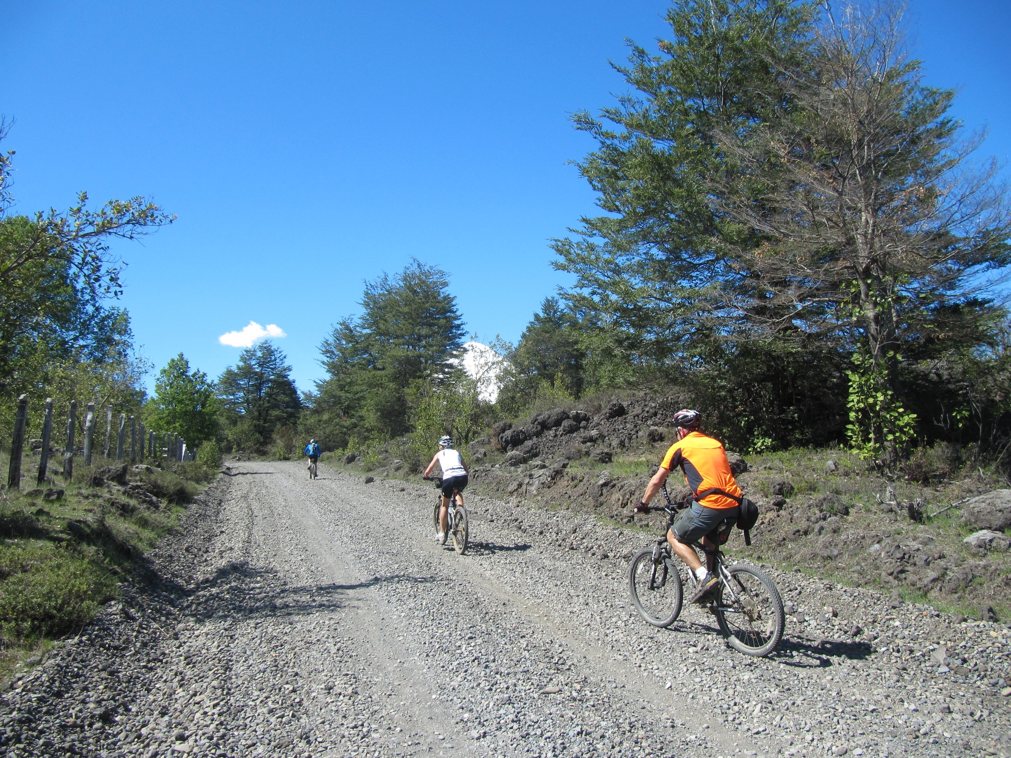 Auf der dritten Tour geht es erneut mit einigen Höhenmetern in den sehr schönen Nationalpark Conguillio(20km, 1.000m). Der Nationalpark liegt in der Region Araucania und entsprechend können die urzeitlichen Araukarien bestaunt werden. Die Tour wurde angepasst, da noch Schnee lag und eine Radtour nur teilweise möglich war. Aber wir konnten die Vulkanlandschaft, Lava, Schotter und die alpine Vegetation in 1.300m Höhe bestaunen.