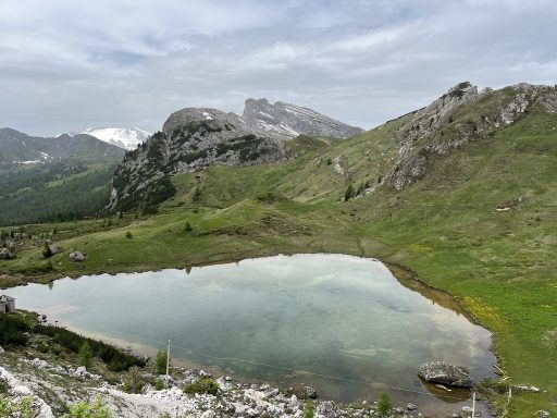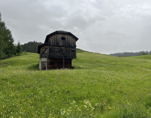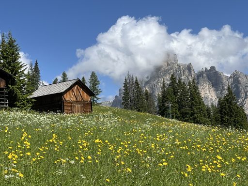 Die Landschaft kann und soll genossen werden, denn die Dolomiten sind grandios und imposant, aber auch die bunten Wiesen sind reizvoll.
