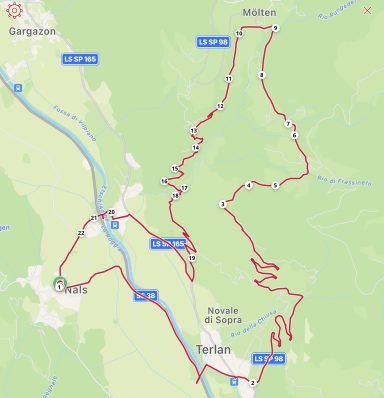 Meran ist eine Reise wert und so wurde in Naturns die erste Radtour gestartet. (30km; 300 Höhenmeter); häufig an der Etsch entlang. Der Radweg ist gut ausgebaut und entsprechend einige Radler unterwegs. Meran ist mondän und wir haben den botanischen Garten sowie die sehenswerte Altstadt erkundet.