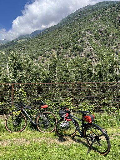 Nals war die nächste Station und hier wurde eine anspruchsvollere Radtour mit einigen Steigungen unternommen (30km; 1.000m). Die landschaftlich reizvolle Tour bot auch einen Blick auf Apfel- und Weinanbau; und es wurde in Handarbeit „Heu gemacht“. Die Tour verlief teilweise über Wanderwege, aber ist für Gravel Bikes gut fahrbar.