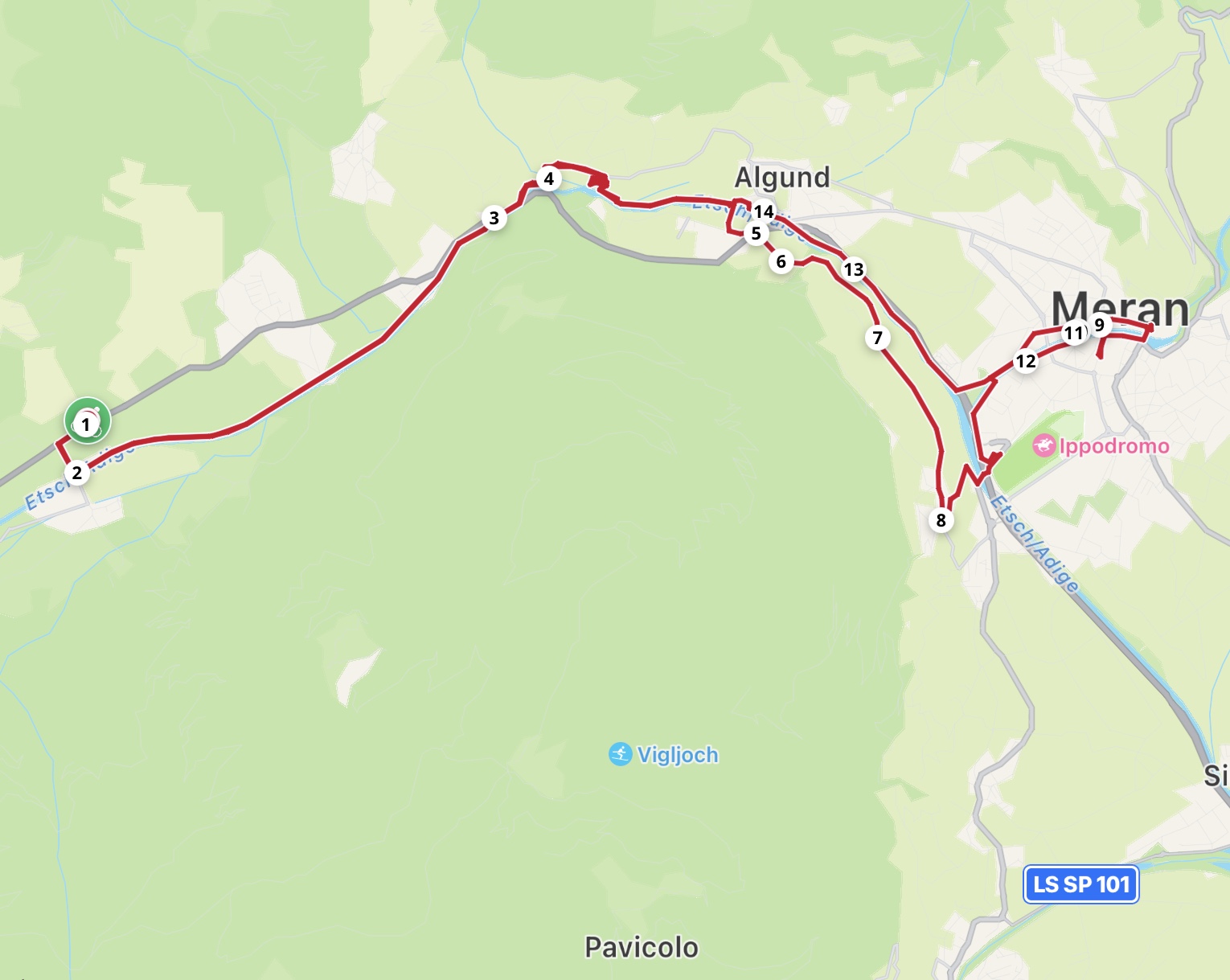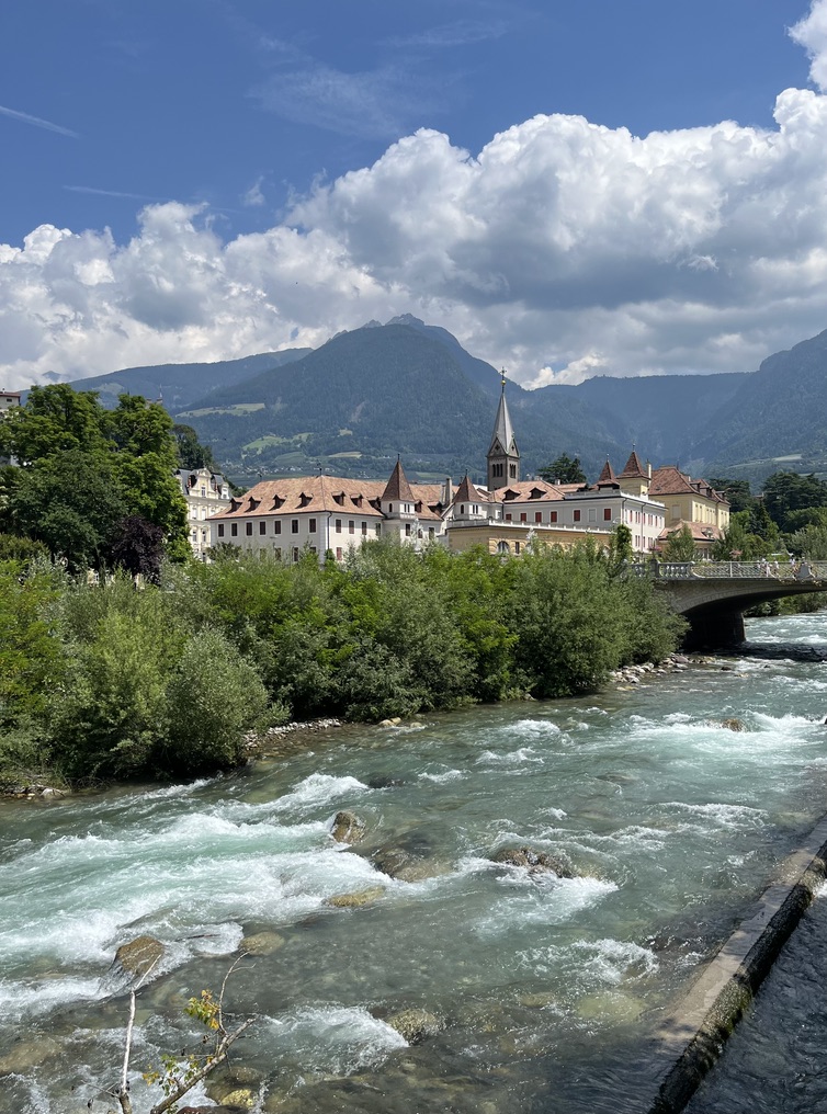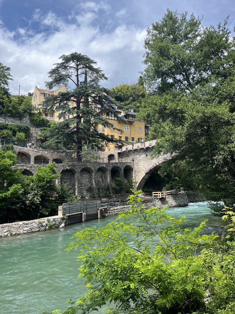 Meran ist eine Reise wert und so wurde in Naturns die erste Radtour gestartet. (30km; 300 Höhenmeter); häufig an der Etsch entlang. Der Radweg ist gut ausgebaut und entsprechend einige Radler unterwegs. Meran ist mondän und wir haben den botanischen Garten sowie die sehenswerte Altstadt erkundet.