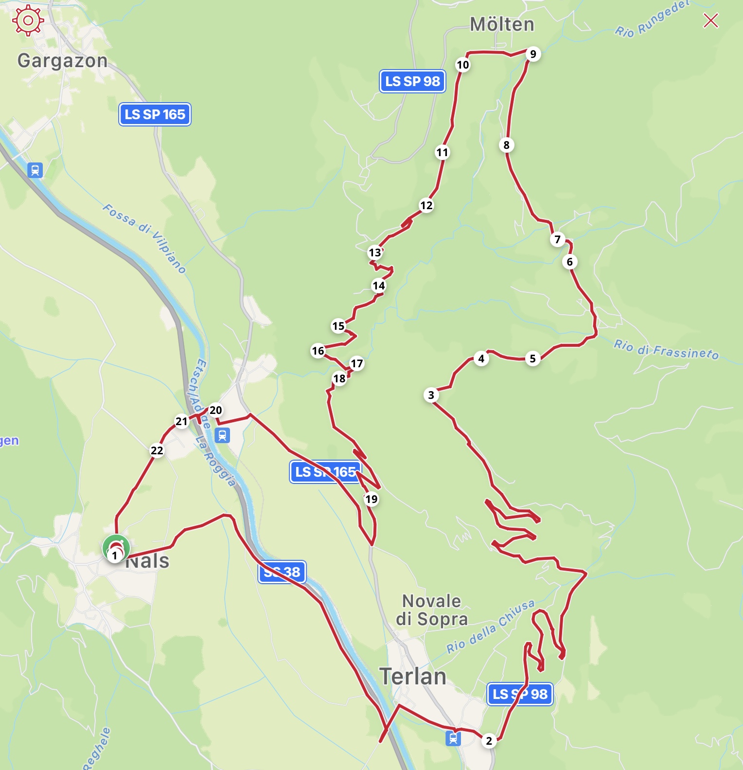 Nals war die nächste Station und hier wurde eine anspruchsvollere Radtour mit einigen Steigungen unternommen (30km; 1.000m). Die landschaftlich reizvolle Tour bot auch einen Blick auf Apfel- und Weinanbau; und es wurde in Handarbeit „Heu gemacht“. Die Tour verlief teilweise über Wanderwege, aber ist für Gravel Bikes gut fahrbar.