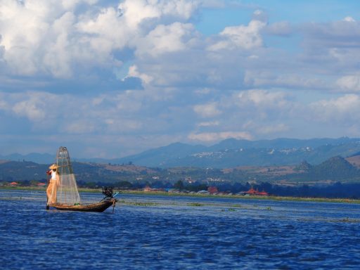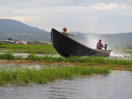 Es folgt eine abwechslungsreiche Etappe an der Westseite des Inle-Sees in Richtung der Shan Hills (59km; 1.290m). Hier hat man noch einmal einen Panoramablick über die Landschaft am Inle-See.