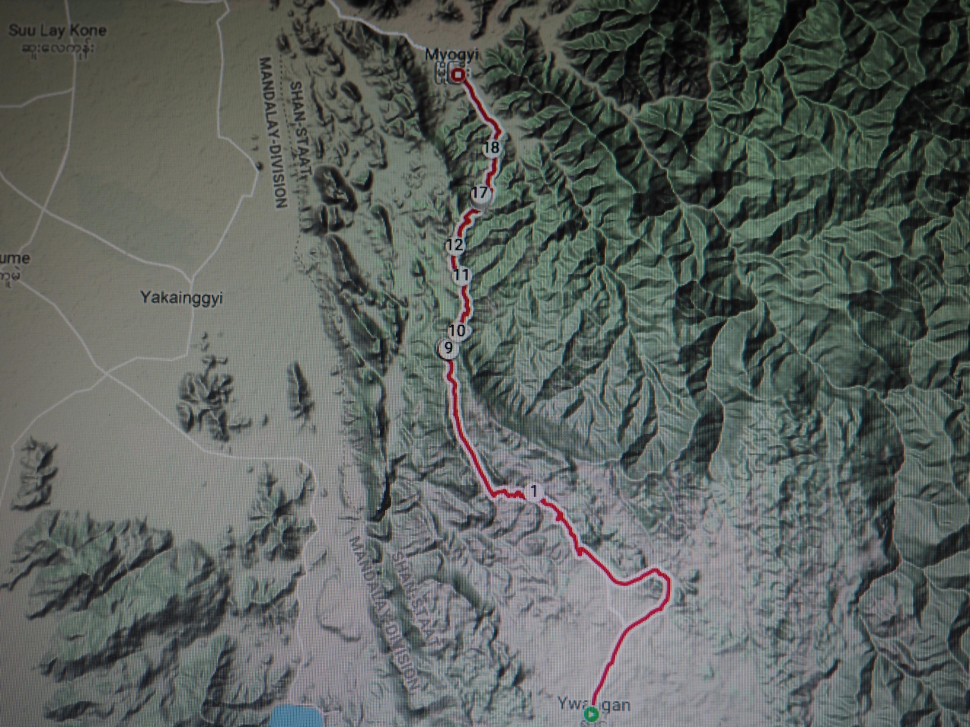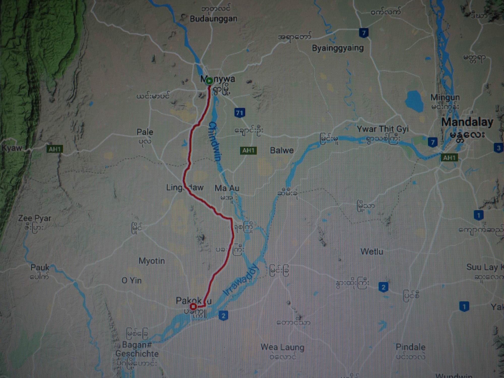 Von Monywa pedalieren wir in das ländlich geprägte Pakokku, wobei eine Fähre über den Chindwin für eine willkommene Abwechslung sorgt (112km; 395m).