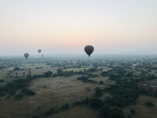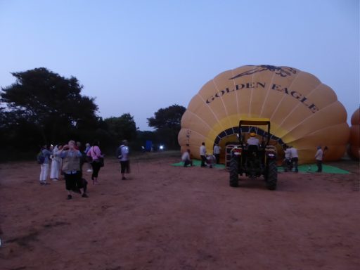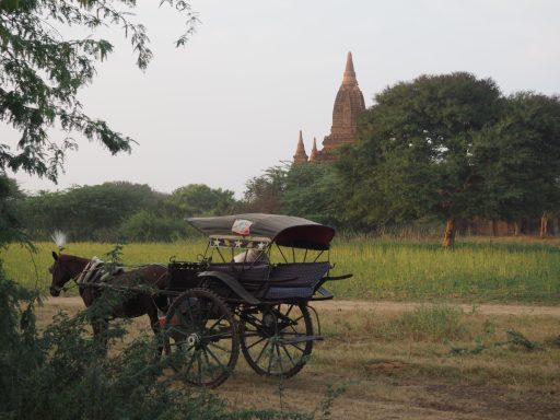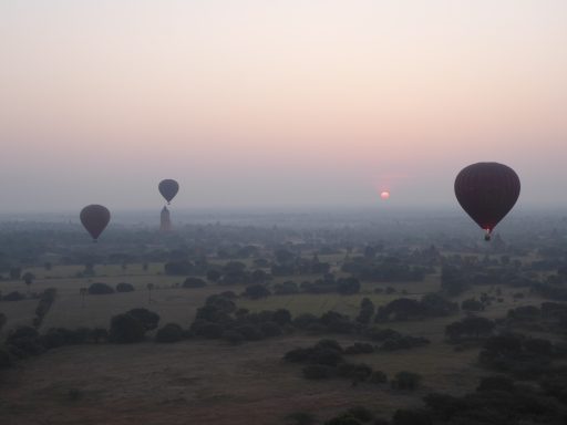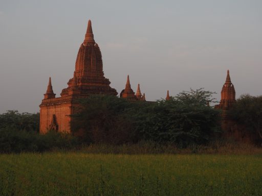 Der Irrawaddy wird über eine große Stahlträgerbrücke überquert und dann geht es nach Bagan (40km; 200m). Hier können unzählige und eindrucksvolle monumentale Tempel besichtigt werden; auch per Ballonfahrt.