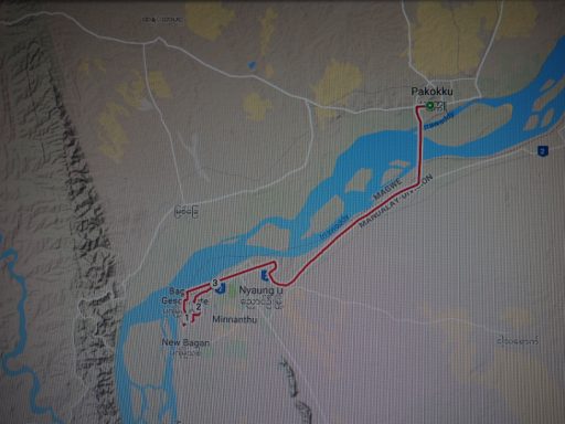 Auf der letzten Etappe geht es zurück nach Bagan, wobei in Kyauk Padaung Station gemacht wird, auch um noch einmal einen Markt zu besuchen (31km; 200m).