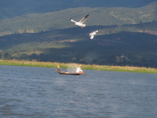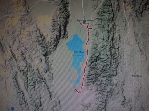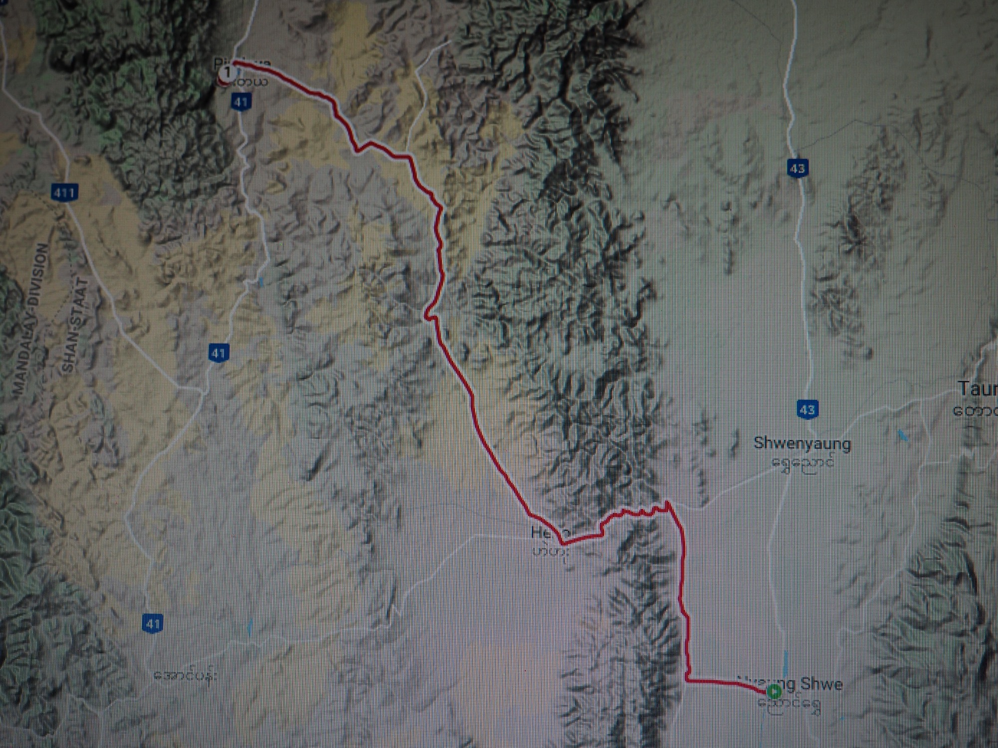 An der Ostseite des Phekone-Sees geht es weiter nach Nyaung Shwe zum Inle-See (75km; 1.700m). Hier können Pagoden, schwimmende Gärten und Fischer beobachtet werden. Auf der „Knoblauchstraße“ geht es nach Thale (33km; 400m).
