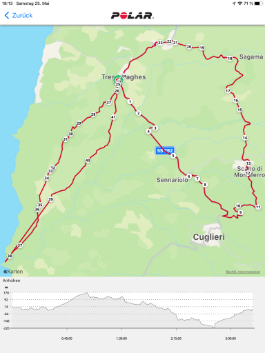 Anschließend ging es mit der Fähre von Livorno nach Olbia auf Sardinien. Hier haben wir die verschiedenen Radetappen im Mai 2024 mit den Gravel Bikes gestartet, indem wir die Insel im Uhrzeigersinn umrundet haben.