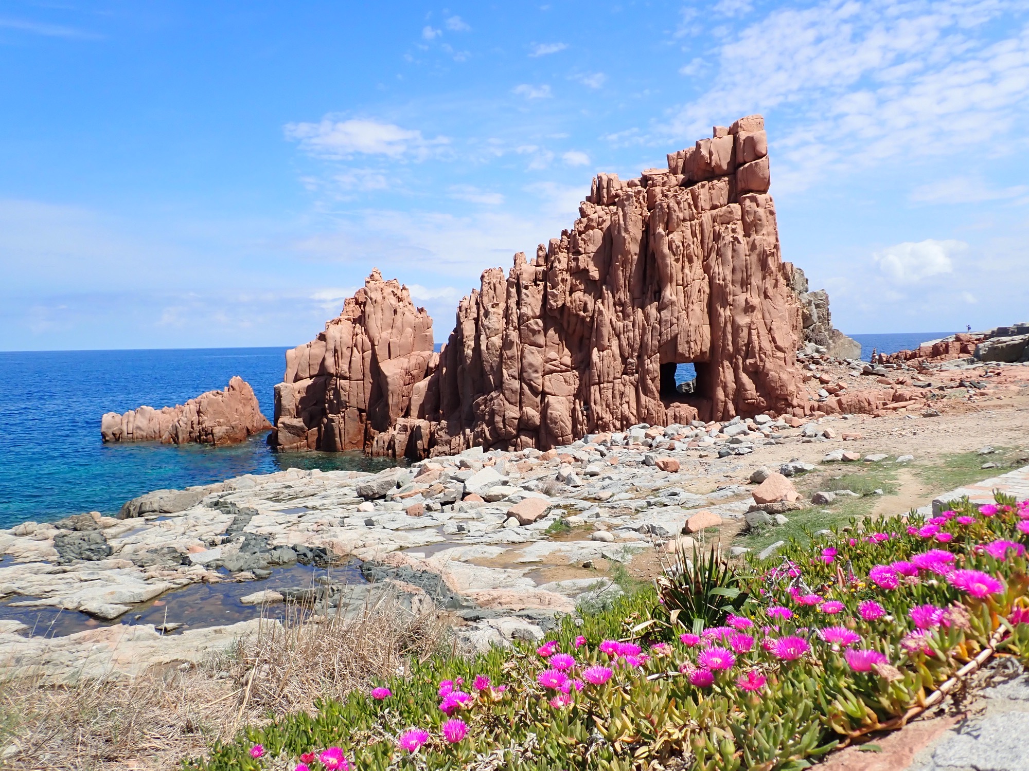 Am nächsten Tag wurden die bizarren Porphyrinfelsen bei Arbatax besucht (56km; 265m). Über unbefestigte Wege können Abstecher zu zahlreichen Sandstränden gemacht werden. Wenn die Kräfte nachlassen kann in der Fischkooperative bei Barisardo sehr gut (und günstig) mit Meerblick gegessen werden.