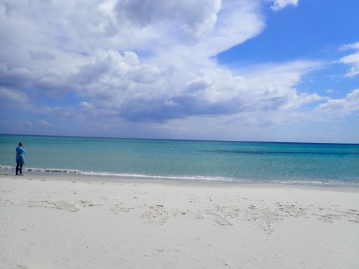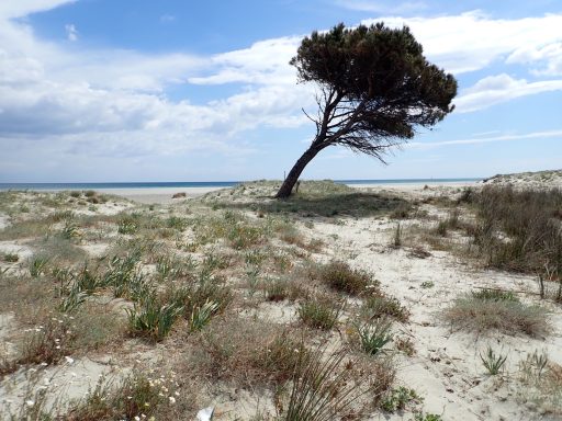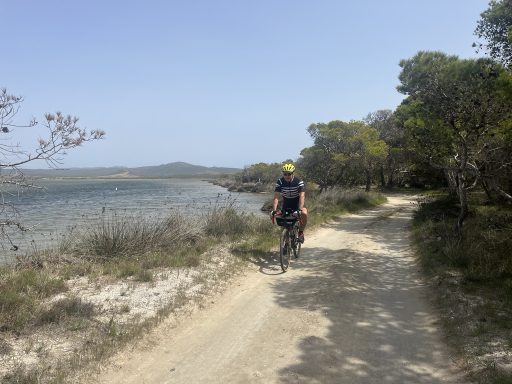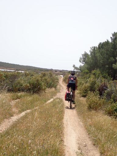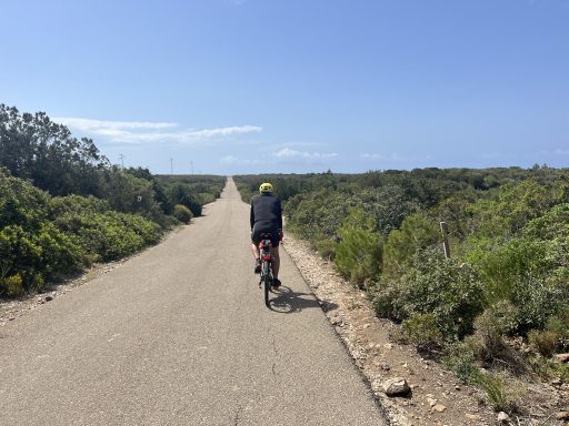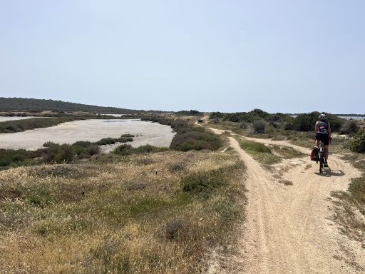 An der Küste geht es weiter in Richtung Arresi (35km; 200m). Sant Anna Arresi ist von einer flachen Landschaft geprägt, die bei unserer Tour sehr windig war. Belohnt wird die Anstrengung durch weiße Strände und Lagunen mit Flamingos. An den Lagunen sind die Wege unbefestigt, aber mit den Gravel Bikes gut zu bewältigen.