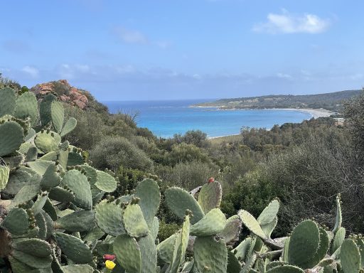 Nächste Station war Castidas mit einer Radtour rund um Villasimius an der Costa Rei (48km; 600m). Es geht an der Küste entlang und von hier hat man einen guten Blick in die malerischen Buchten und den Steineichen und der Macchia am Wegesrand.