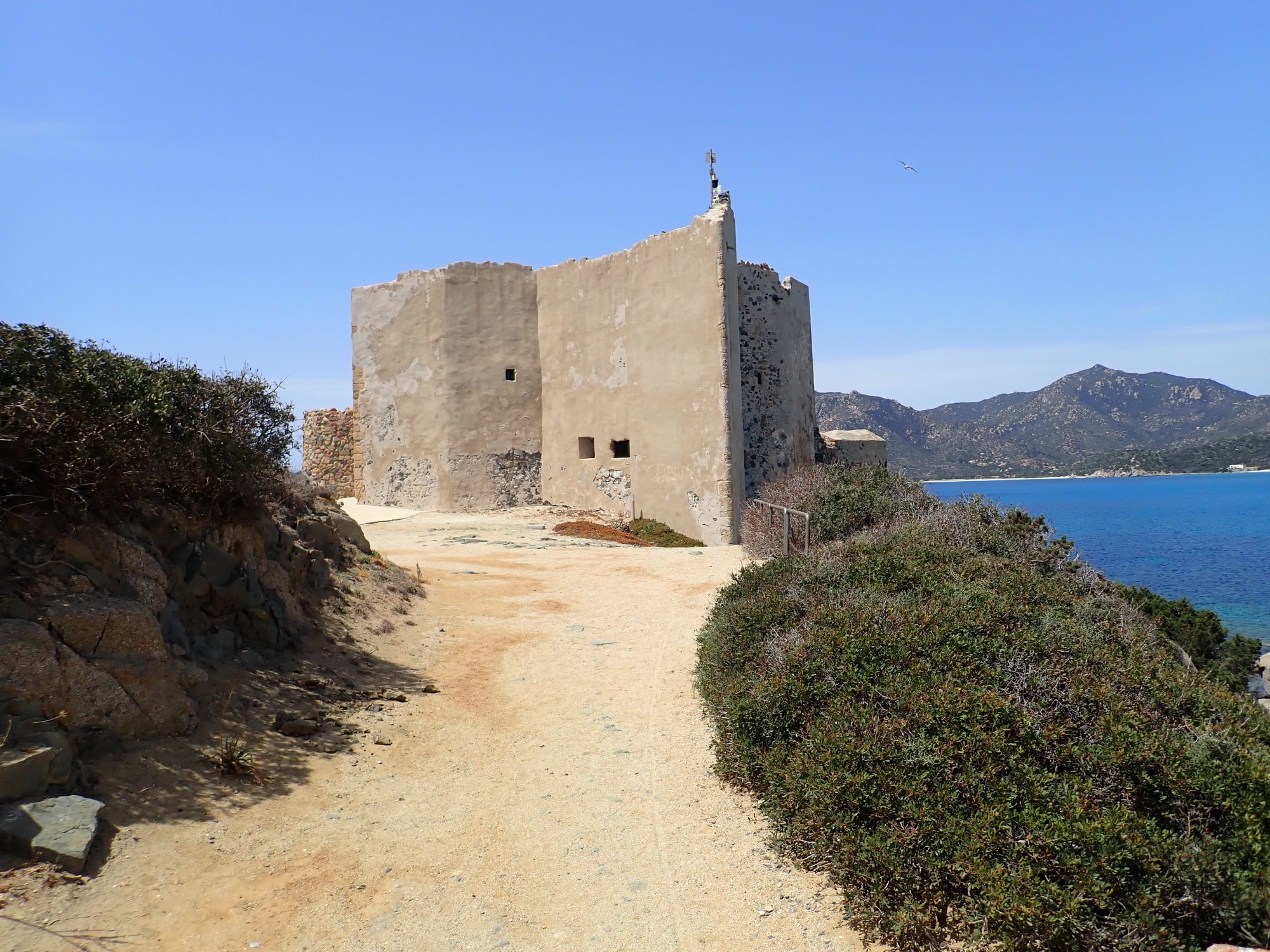 Erste Station war Cardedu. Hier starteten wir die erste Tour nach Torre di Bari (25,5km; 230 Höhenmeter). Auf dem Weg konnte der Weinanbau studiert werden; später die Weinprobe. Torre di Bari bei Barisardo ist markant geprägt durch einen Festungsturm an einem langen Sandstrand.