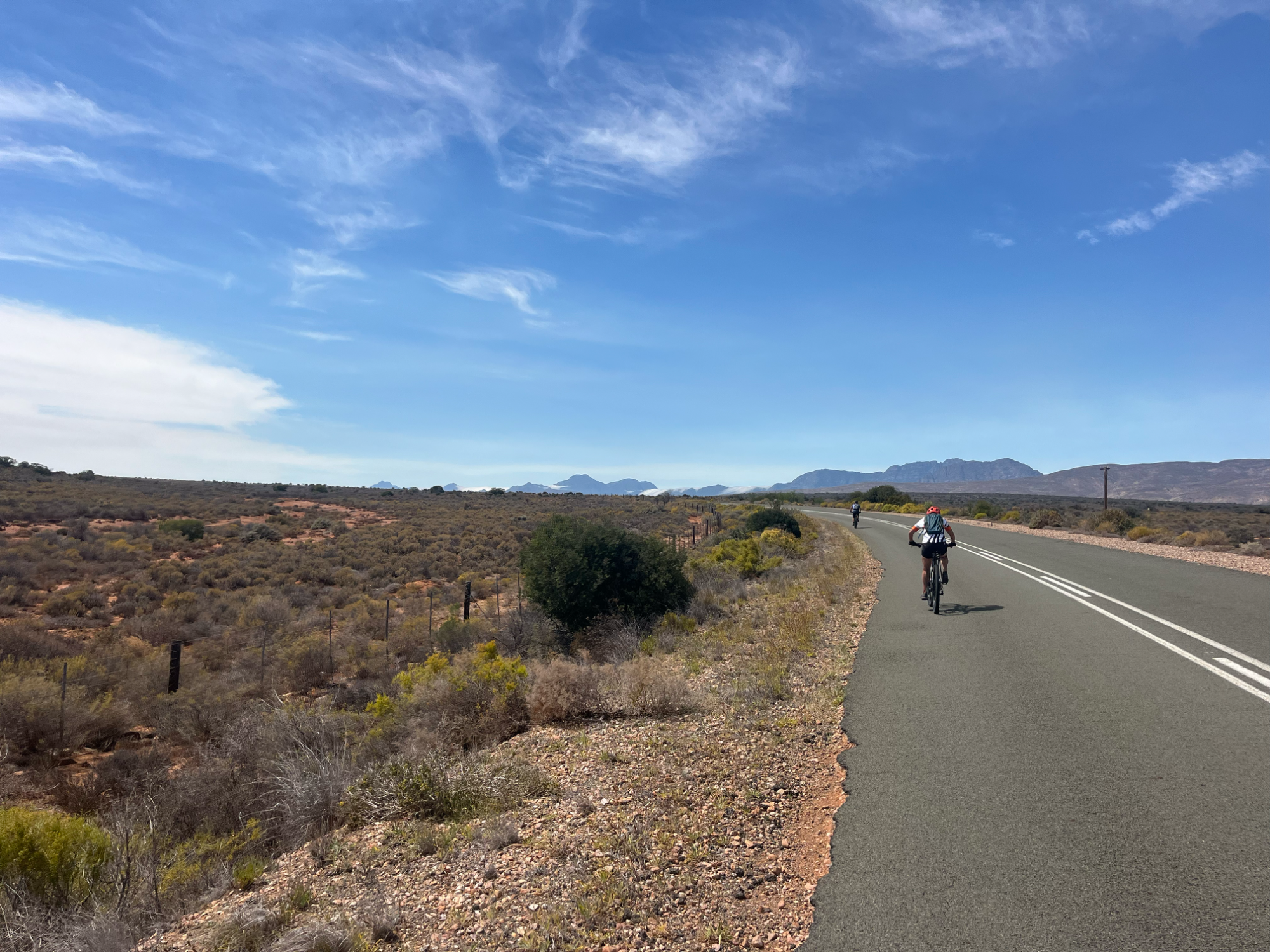 2. Das Klima ist im südafrikanischen Frühling ideal für Radtouren und daher ist diese Reisezeit zu empfehlen. Natürlich sollte berücksichtigt werden, dass die Tagestemperatur auch auf 30 Grad ansteigen kann, Abkühlung bietet die Nacht. Auch ist der Wind zu berücksichtigen (Halsschal (!) und unter Umständen Gegenwind).