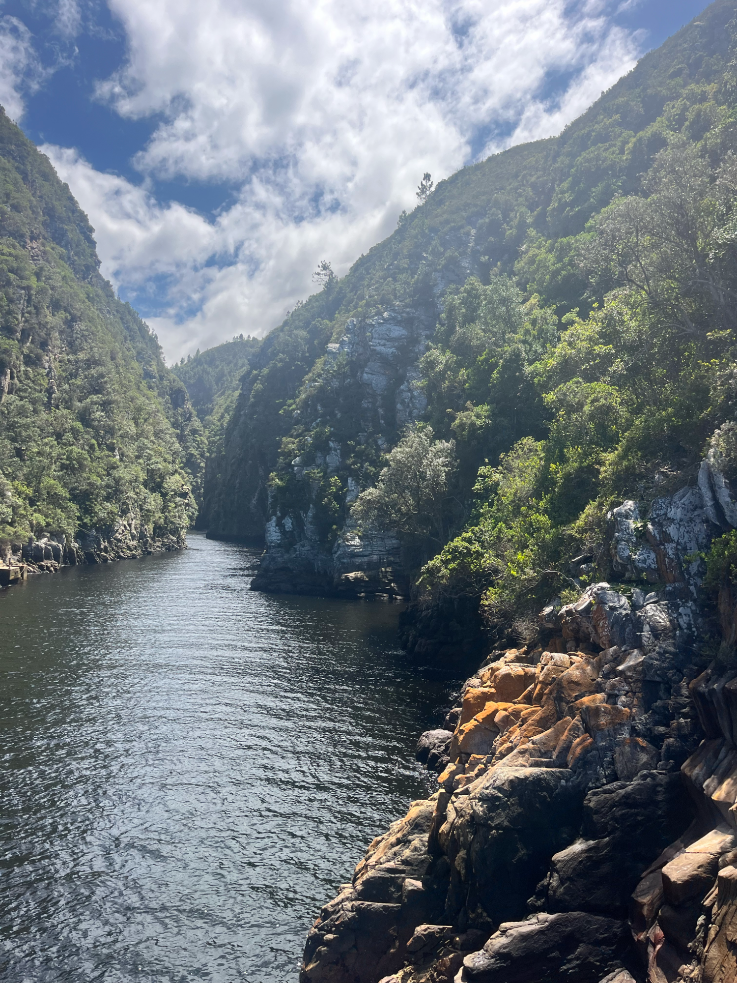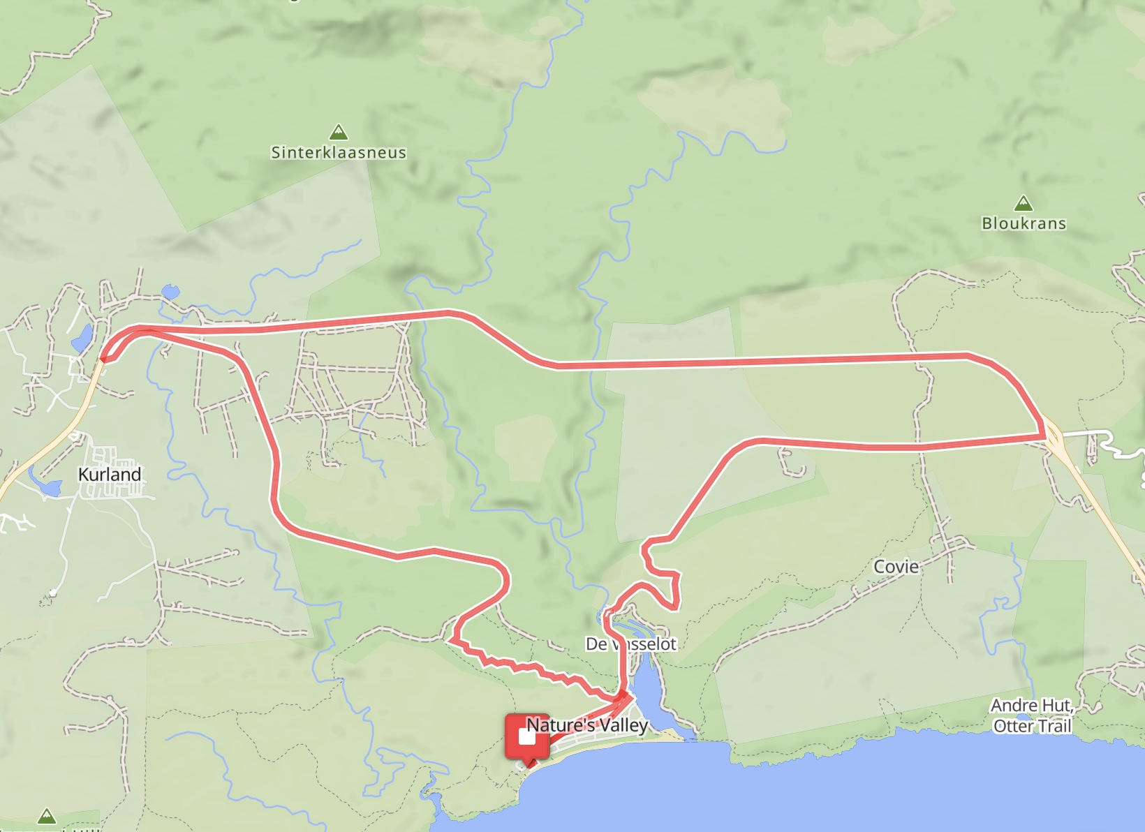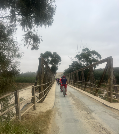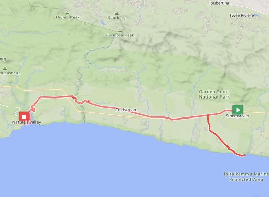 Am nächsten Tag führte die Radetappe auf das bewaldete Plateau bei Stormsriver und anschließend zum Tsitsikamma-Nationalpark: frische Meeresluft, Urwald, Felsen und bewegte Küste. Ausgeruht ging es über eine kurze, schnelle Abfahrt zur Mündung des Storms River an der wildromantischen Küste. Abschließend radelten wir zurück auf das Plateau und durch das schöne Bloukrans-Tal (mit der berühmten Brücke) nach Nature's Valley am Indischen Ozean. Umgeben ist das Tal von ausgedehnten Waldgebieten des Tsitsikamma-Forsts.