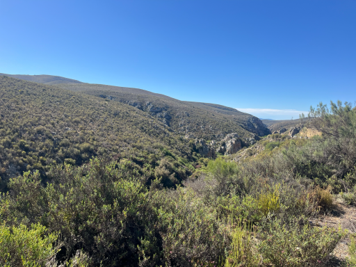 Ausgeruht ging es, nach einem Ruhetag, weiter mit der Überquerung des Olifantsflusses und einem langen Anstieg. Es wurde auch der höchste Anstieg der Reise absolviert: der Robinson-Pass (860 m). Belohnt wurde die anstrengende Etappe mit imposanten Panoramaaussichten. Bei gutem Wetter kann man den Blick bis zum Indischen Ozean und zur Mossel Bay schweifen lassen. Endstation war dann Klein Brak River.