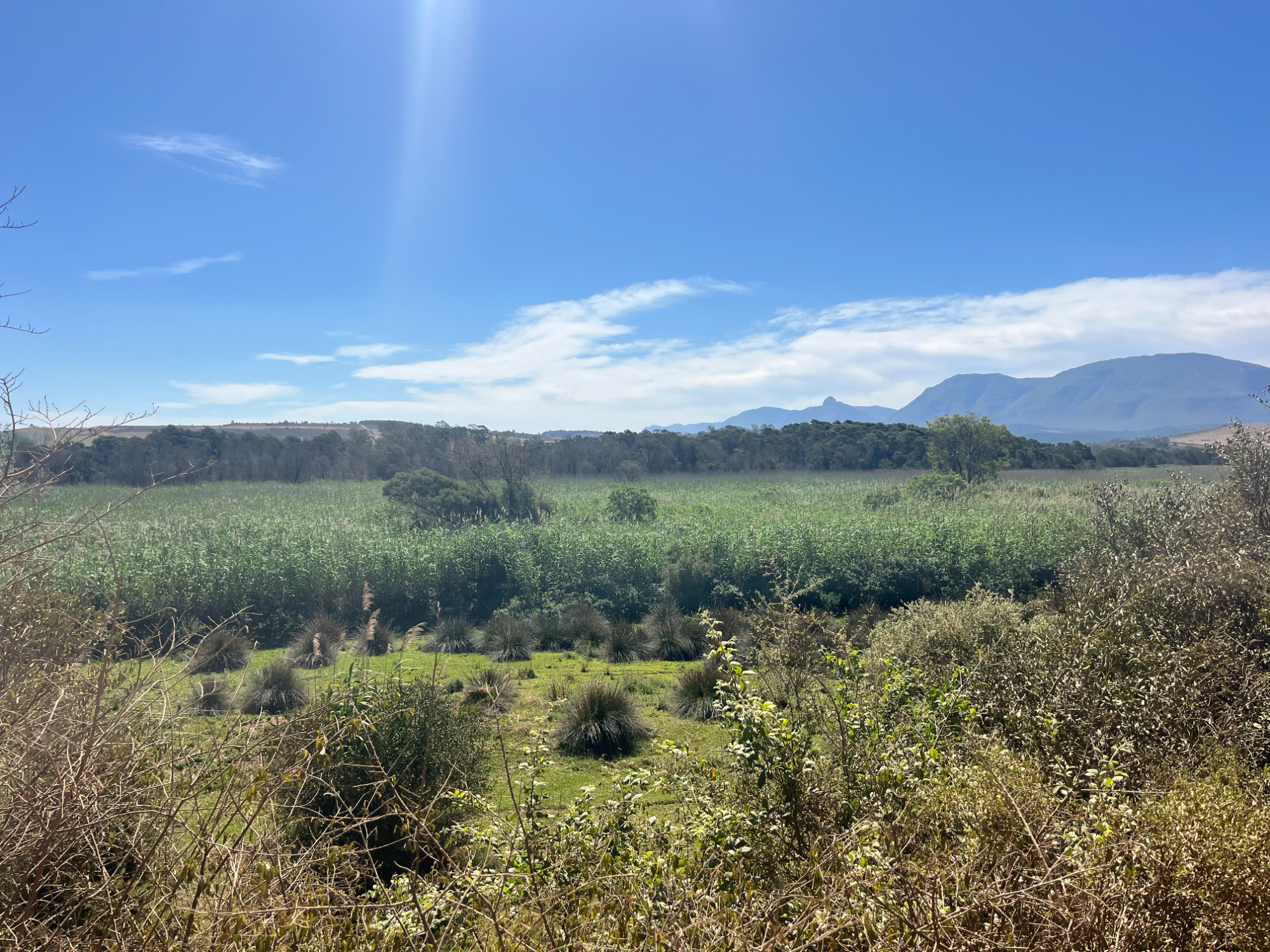 Weiter ging es von Albertinia, dem Zentrum der Aloezucht, nach Riversdale. Albertinia, am Indischen Ozean gelegen, repräsentiert das ursprüngliche Südafrika, das von Landwirtschaft und Viehzucht geprägt ist. Während der Fahrt konnten auch die wilden Aloe Ferox, auch Kap-Aloe, bestaunt werden. Riversdale ist ein Küstenort am Fuße der Langeberg Mountains, genauer: am „Sleeping Beauty Mountain“ gelegen.
