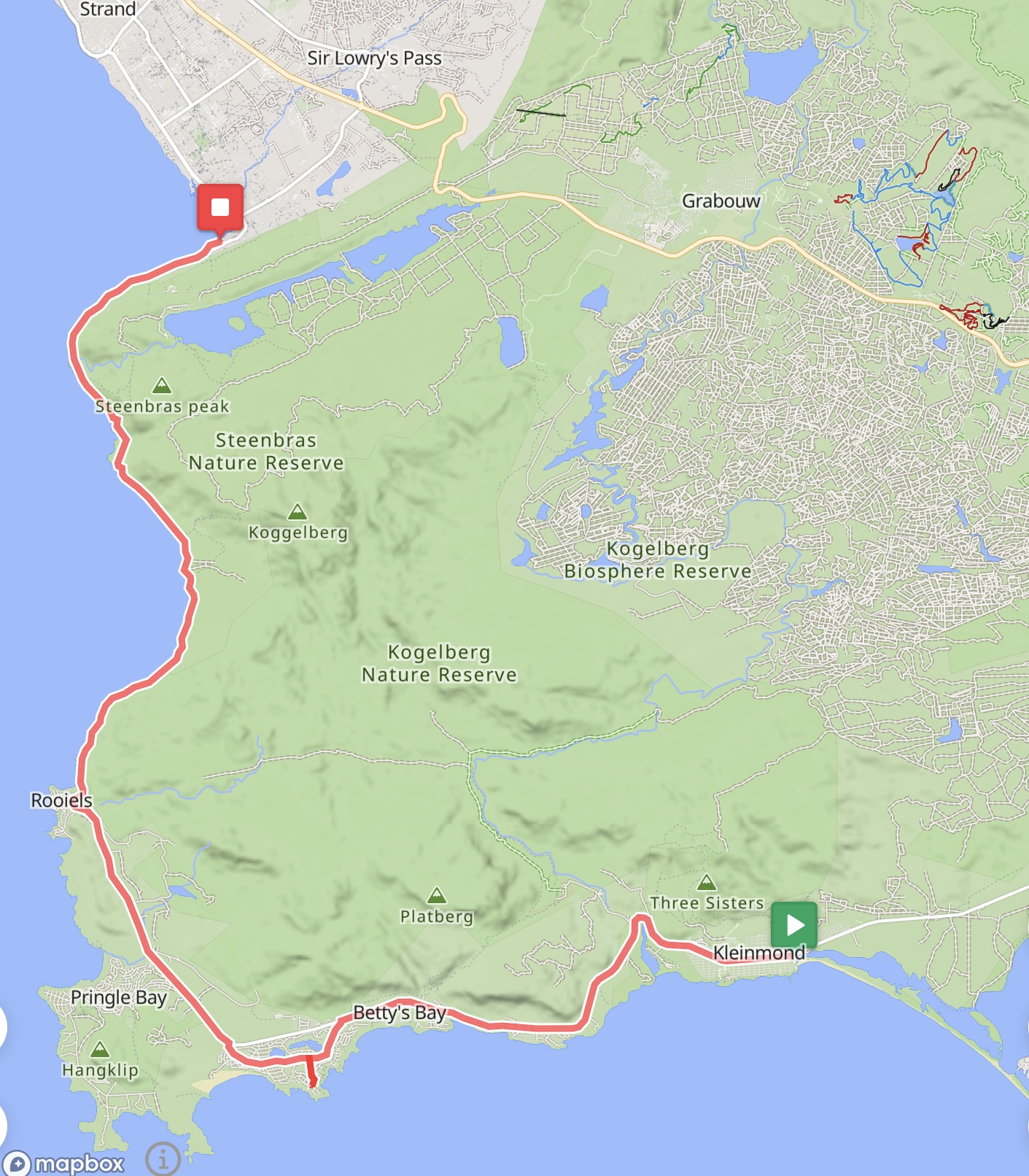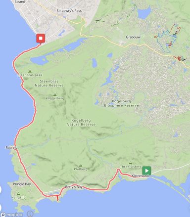 Die nächste Etappe führte von Kleinmond durch das Biosphärenreservat in Kogelberg und schließlich nach Gordon’s Bay, einem Ort mit schönem Badestrand. Auf dieser Etappe konnten wieder eine Vielzahl von Tieren, wie Paviane und Pinguine (in der Betty’s Bay), aber auch zahlreiche Pflanzen beobachtet werden. Dies ist dem Umstand geschuldet, dass im europäischen Herbst in Südafrika Frühling herrscht.