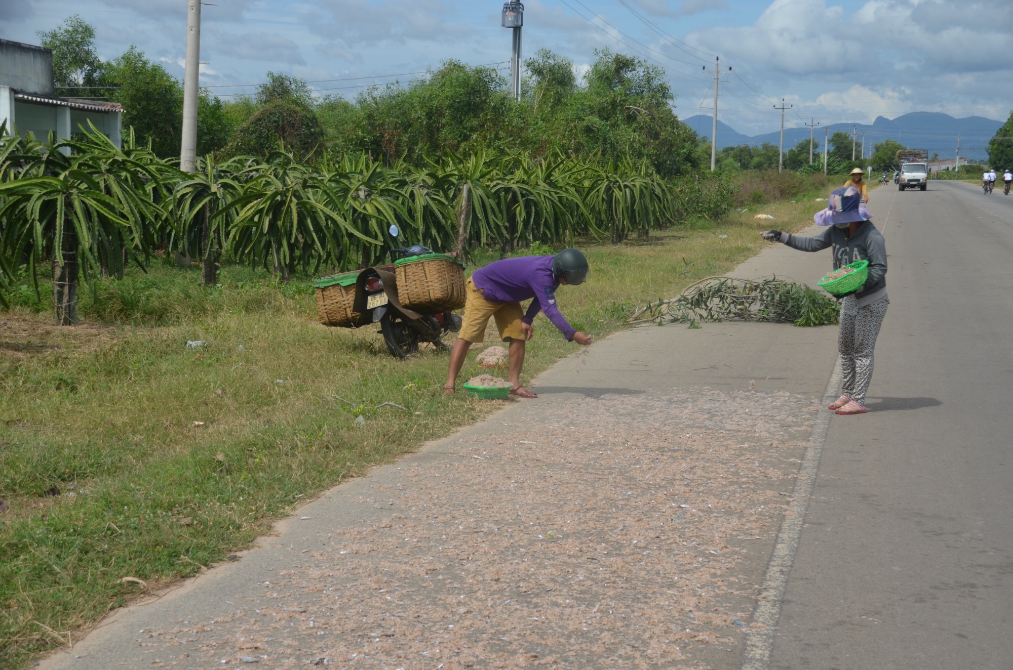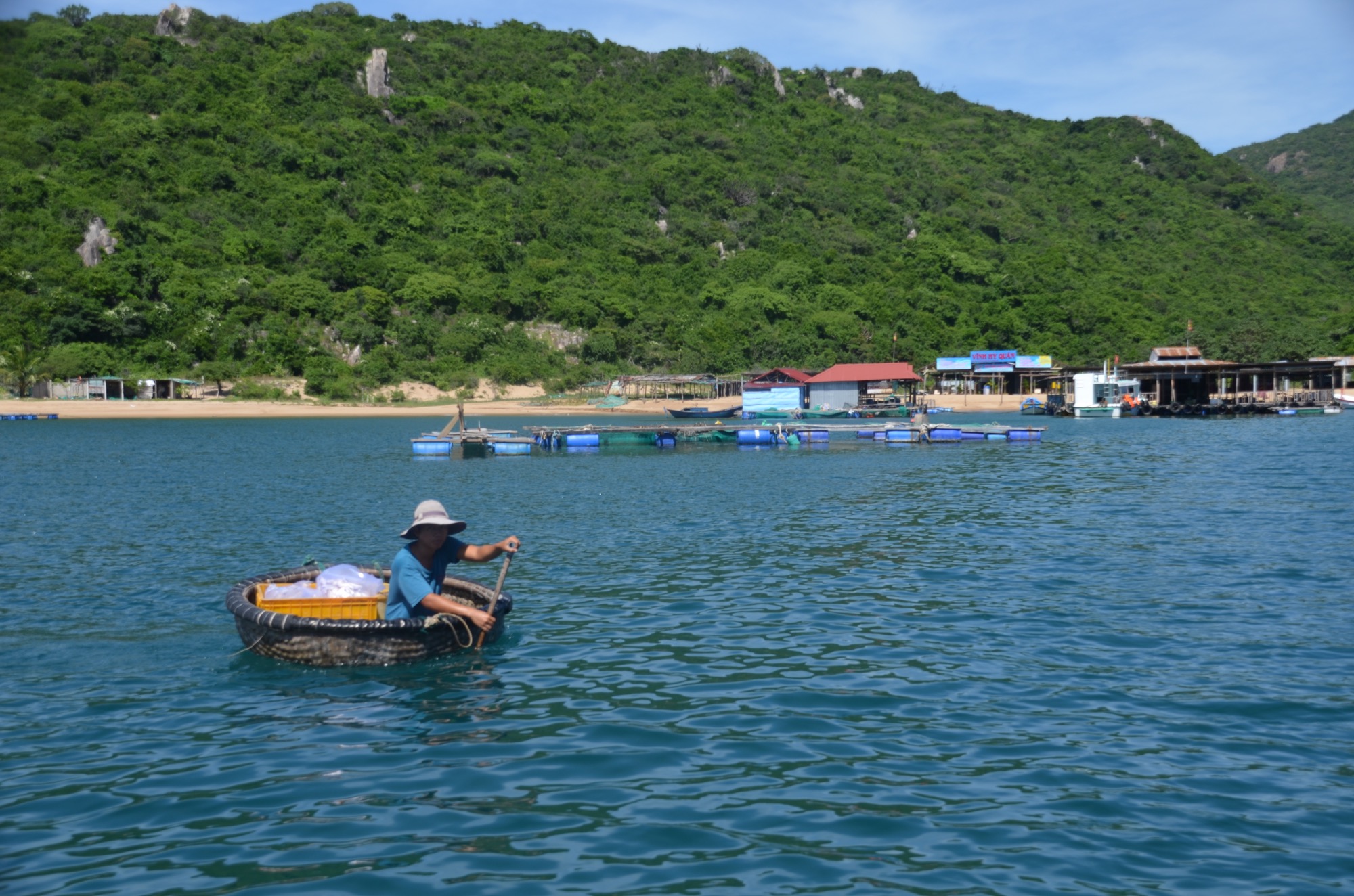 An der Küste geht es vorbei an schönen Stränden, vorgelagerten Inseln und vielen kleinen Restaurants mit Meeresfrüchten nach Nha Trang (35km). Im Hintergrund ist die imposante Berglandschaft. An der Küste geht es weiter nach Vinh Hy (25km); diesmal mit einigen leichten Anstiegen, aber auch Abstiegen. Und noch immer geht es an der Küste weiter nach Mui Ne (25km). Auch hier kann der maritime Einfluss beobachtet werden: Garnelenzucht, Salzlagunen und rote (!) und weiße Dünen.